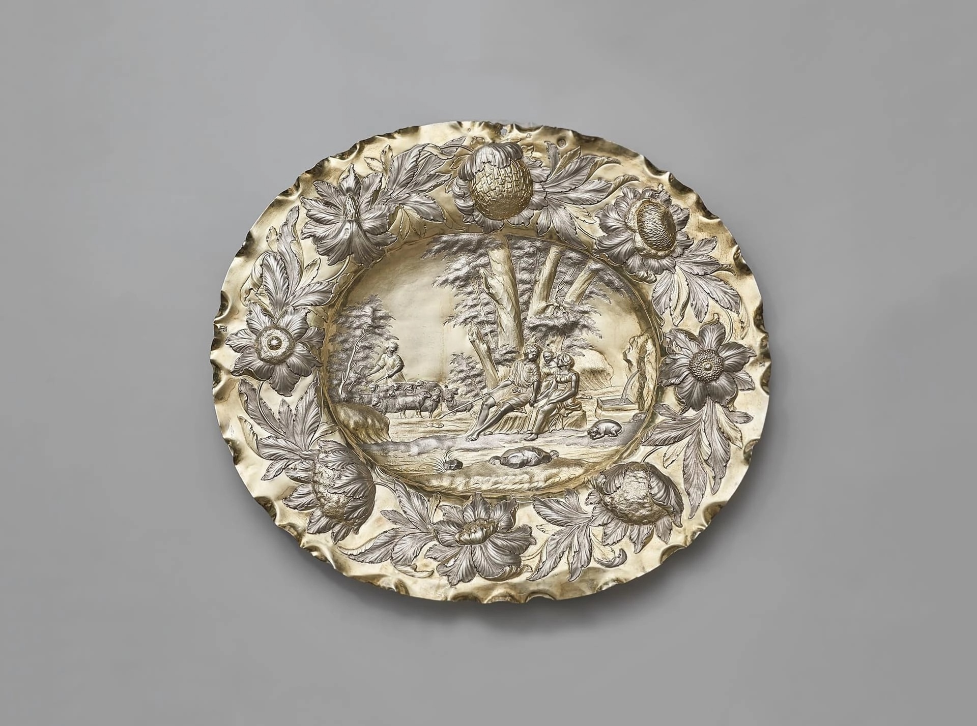 На выставке можно также увидеть эффектное настольное украшение из собрания Оружейной палаты, привезенное в дар царю Алексею Михайловичу от императора Леопольда I. Оно представляет не только художественную, но и историческую ценность как напоминание о русском посольстве в Вену 1674–1675 годов, целью которого было поздравление правителя Священной Римской империи с бракосочетанием, а также извещение о заключении мирного договора между Россией и Речью Посполитой. Важное место в ходе переговоров занимал вопрос о создании антитурецкой коалиции. Аллюзией на этот вопрос служит ножка украшения в виде фигуры воина в восточных одеждах.