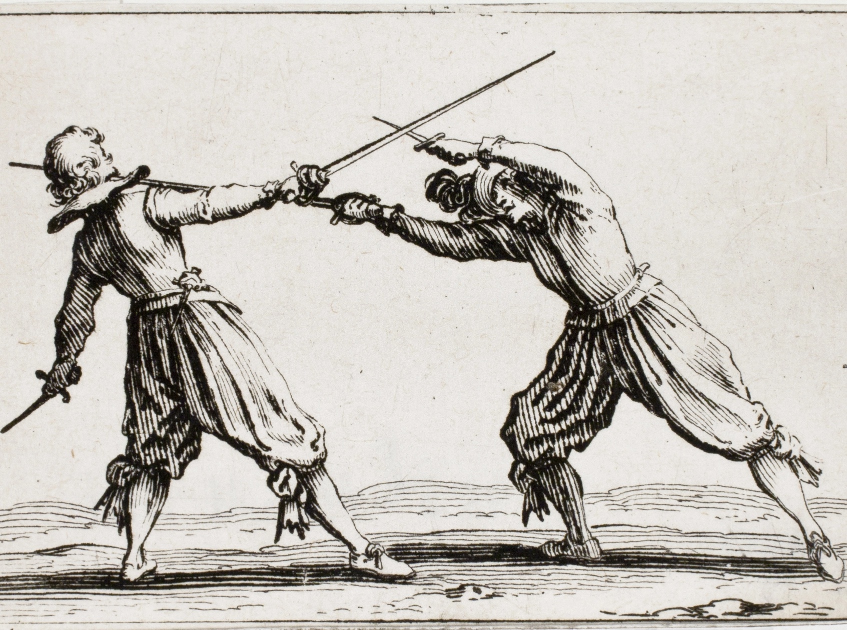 С появлением дуэлей неразрывно связано искусство фехтования, которому дворяне обучались с детства. Среди экспонатов – арсенал дуэльного оружия, а также фехтовальные трактаты самых известных учителей и мастеров XVI–XVII веков. Офорты прославленного художника Жака Калло с изображением сцен поединков соседствуют со шпагами, которые использовали на дуэлях знатные аристократы.
